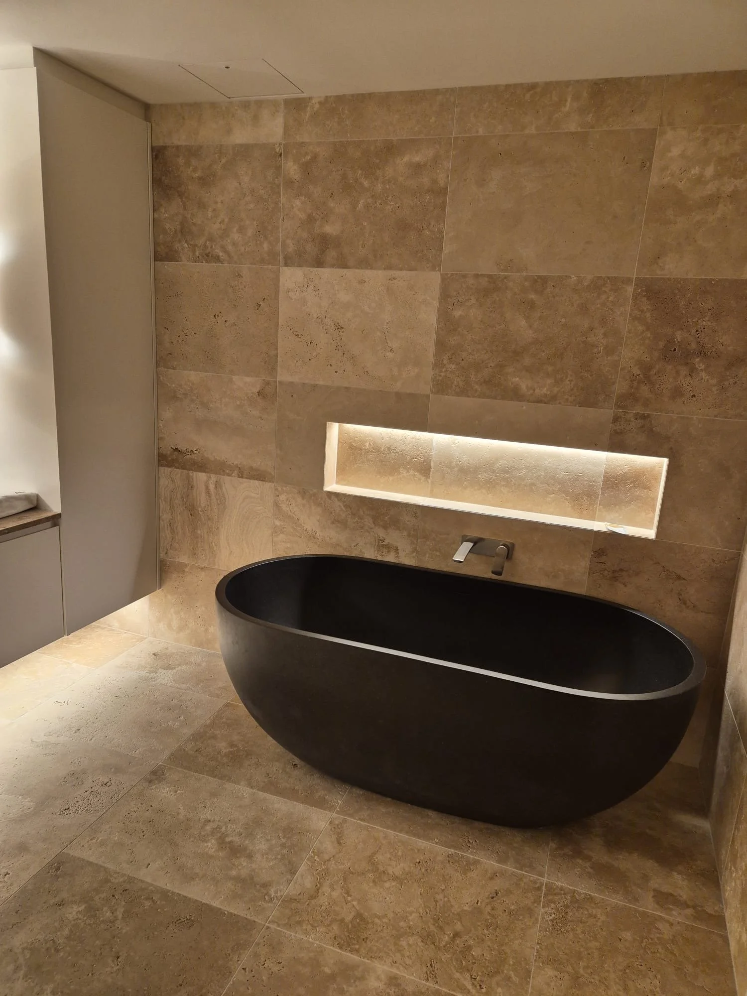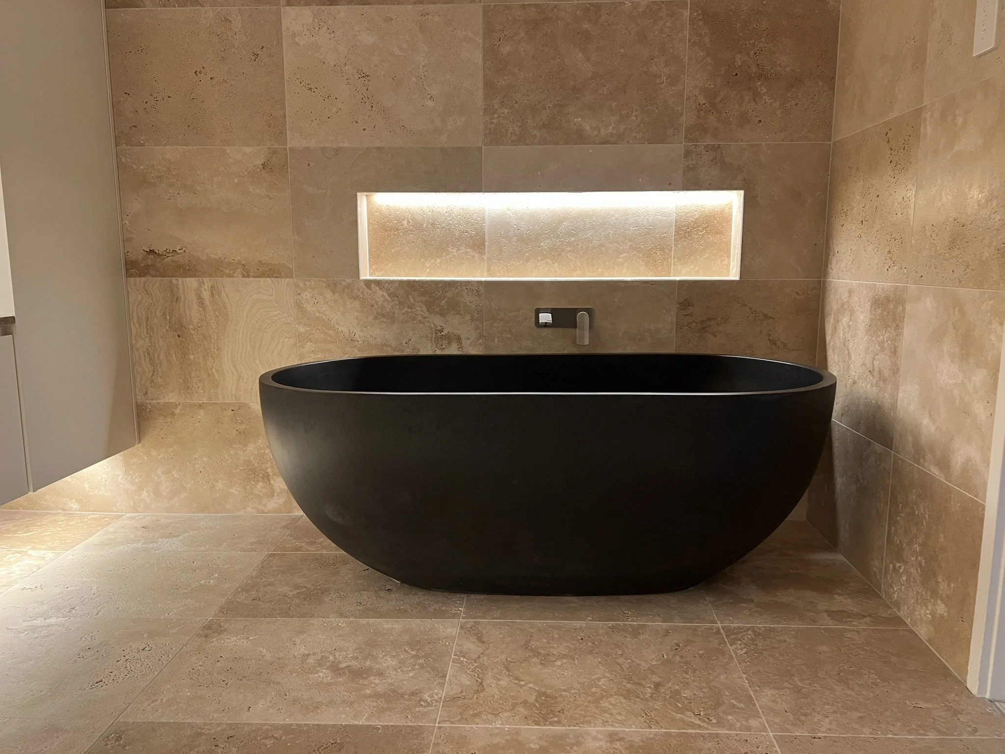 Our stone mason then cut and installed the stone cladding with precision, and we finished the design with a COB IP67 LED light - perfectly suited to wet areas for both safety and ambience.