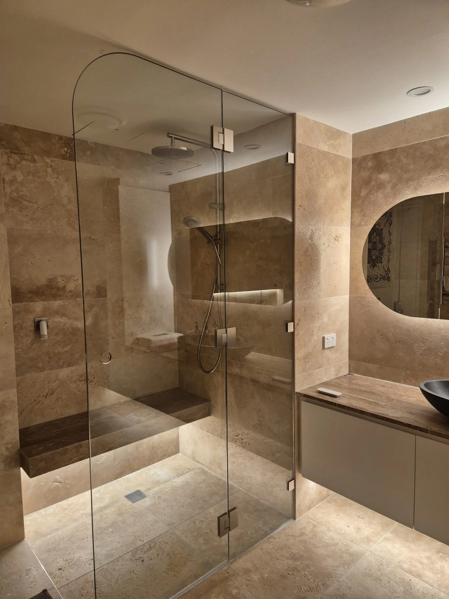 The result is a striking floating shower seat that blends practicality, strength, and modern luxury - an example of how Assaly creates bespoke bathroom renovations that last.